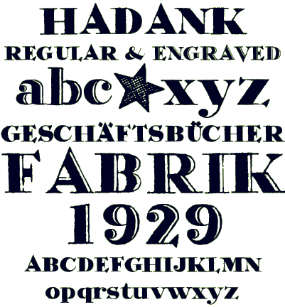 This font is derived from hand-lettered words in the stationery of a German printer from the 1920s